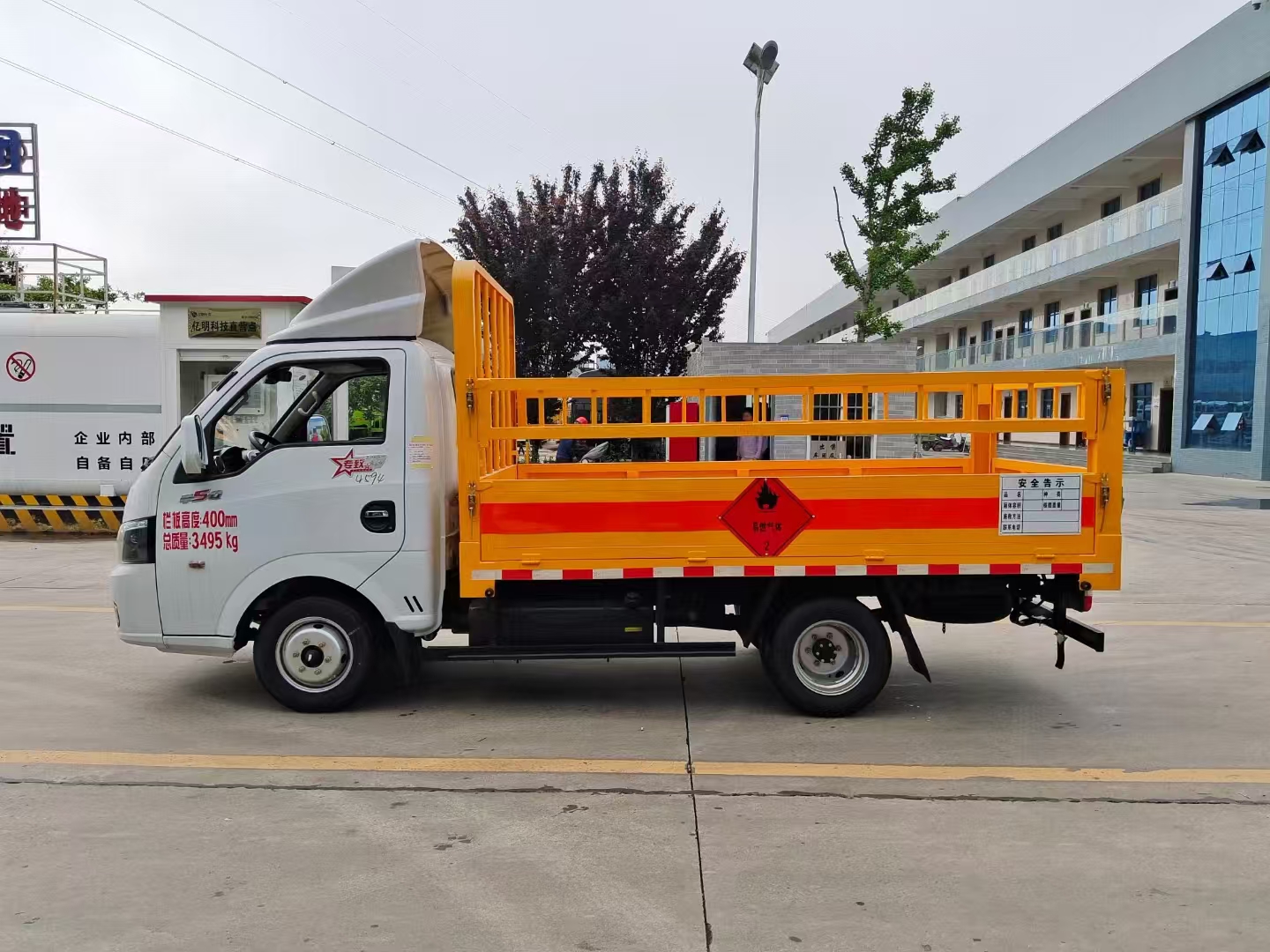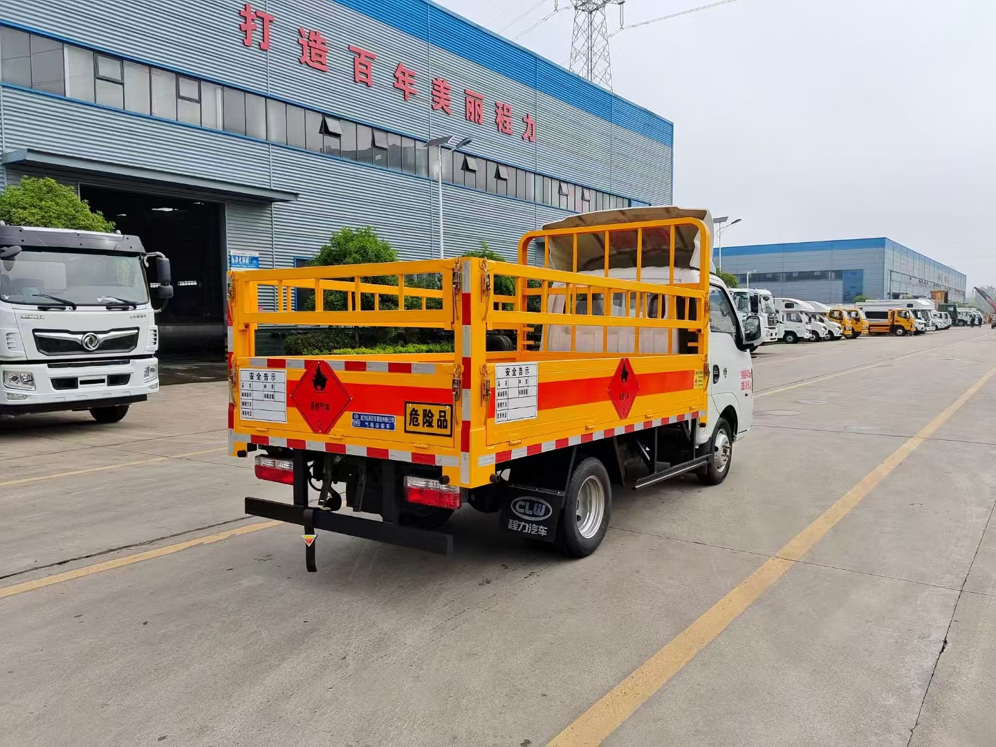 | 上裝配置 | 欄板可選裝高欄或者低欄,底板為3mm板材,底板上鋪有靜電膠皮,有靜電帶、滅火器、防火罩。整車國(guó)標(biāo)反光標(biāo)示及警告標(biāo)志。 | ||