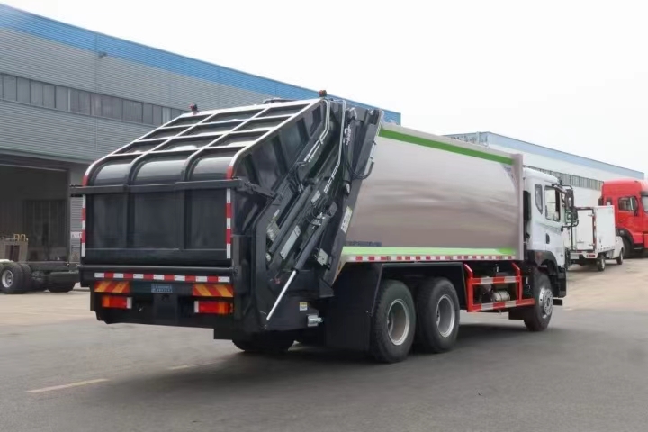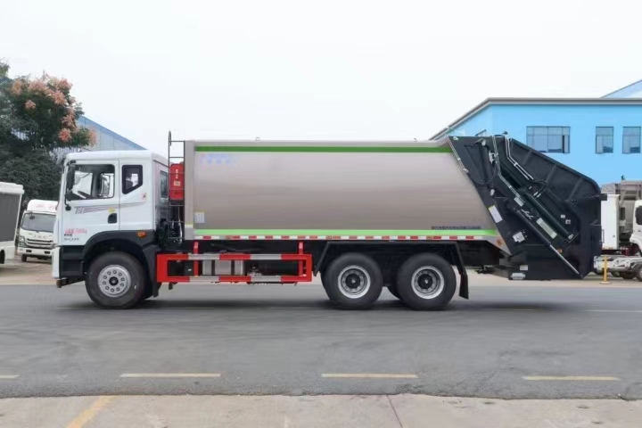 | 上裝配置 | 新款弧形箱體,箱體容積加大約22立方,箱體為優(yōu)質(zhì)高強(qiáng)度Q345錳鋼制作,底箱及填充器采用加厚鋼板,耐腐蝕使用壽命長(zhǎng),三層油漆噴涂處理/電泳工藝。裝載循環(huán)以及垃圾排出時(shí)間快,上裝部分具備雙向壓縮和蠕動(dòng)壓縮功能帶。新款結(jié)構(gòu)加大填充器,手電一體操作模式,帶駕駛室操作,帶駕駛室一鍵卸料功能,尾部裝置可以選裝垃圾翻轉(zhuǎn)斗,掛桶翻轉(zhuǎn)板或者大落地斗。PLC/CAN總線控制方式,光電開(kāi)關(guān)加延時(shí)雙系統(tǒng)控制,降低故障率,方便維修。帶夜間照明裝置,帶污水箱,標(biāo)配選用:定制油缸(質(zhì)保兩年),中梅多路閥,液壓油泵(雙泵雙閥),帶液壓散熱器,嘉善取力器。 | ||