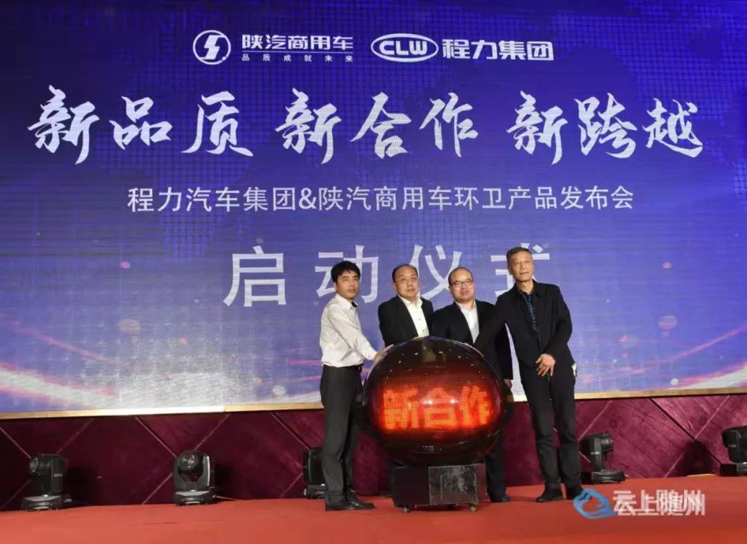 程力汽車集團(tuán)黨委副書記、集團(tuán)公司常務(wù)副總經(jīng)經(jīng)理、程力(湖北)底盤供銷公司董事長(zhǎng)程國強(qiáng),陜汽商用車銷售公司副總經(jīng)理魏宇龍,程力集團(tuán)副總經(jīng)理、底盤供銷公司總經(jīng)理劉峰,陜汽商用車銷售公司專用車部部長(zhǎng)穆瑋周共同啟動(dòng)水晶球,宣布程力集團(tuán)陜汽商用車環(huán)衛(wèi)系列產(chǎn)品正式發(fā)布。