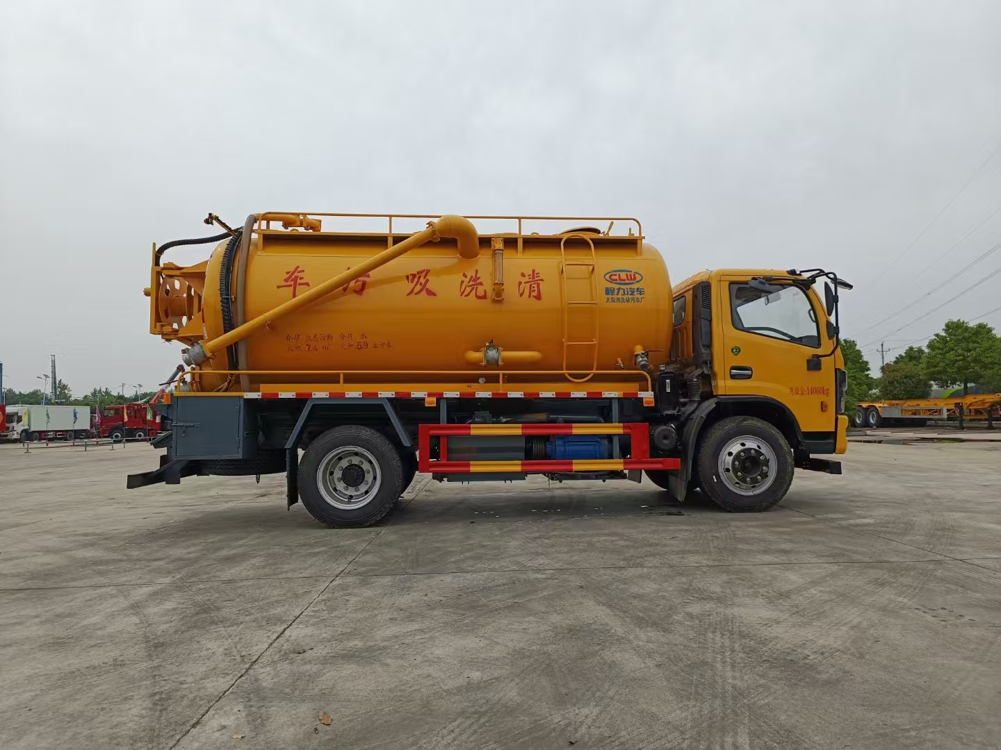 污水罐 SK-12水循環(huán)泵,水循環(huán)泵水箱為碳鋼材質(zhì),頂部防溢閥位置盡量最低,尾部開(kāi)大蓋,100球閥直通罐頂吸污,吸污壓力表裝在水箱附近,罐體尾部?jī)蓚?cè)工具箱,手動(dòng)油門,1根8米吸污管帶陰陽(yáng)端接口,10個(gè)組合槍頭,其他廠內(nèi)標(biāo)配。